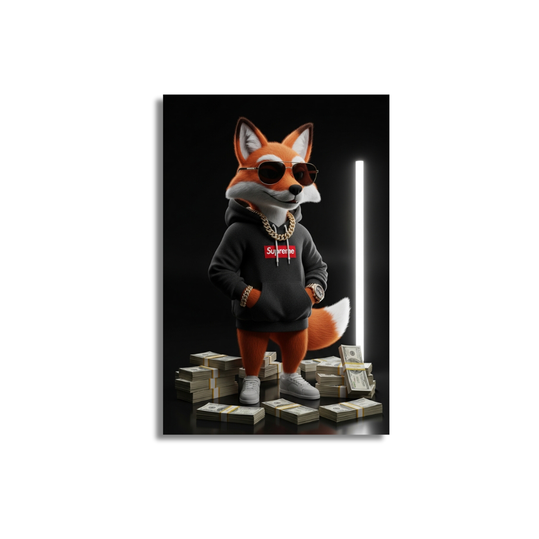 “Fox Supreme” representa el equilibrio perfecto entre estilo y confianza. Con su sudadera negra Supreme, cadenas doradas y fajos de dinero a sus pies, este zorro urbano proyecta elegancia, lujo y actitud callejera. Una pieza llena de personalidad, ideal para espacios modernos, oficinas creativas o estudios con vibra premium. 💵✨