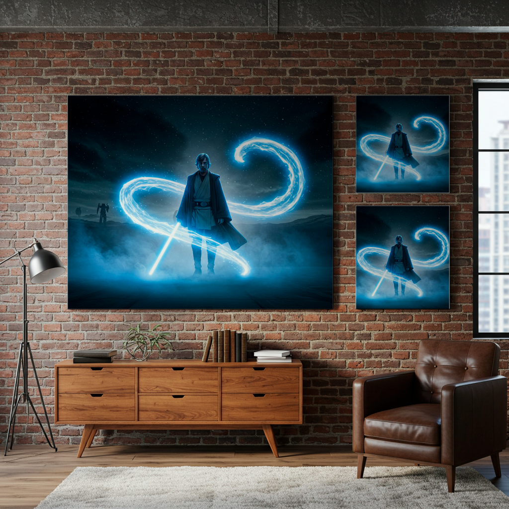 Siente la fuerza en tus muros con el Cuadro Decorativo Luke Skywalker, una pieza galáctica para verdaderos fanáticos de Star Wars.