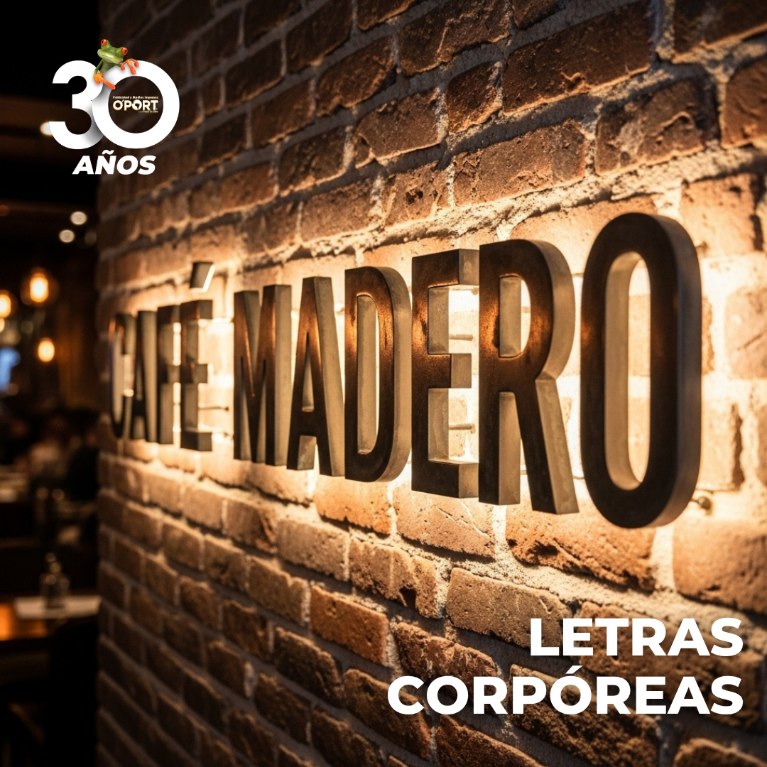 Las letras corpóreas son una opción elegante y duradera para destacar tu marca o negocio. Fabricadas con materiales de alta calidad, se pueden personalizar en tamaño, tipografía y acabado para adaptarse a tu identidad visual. Disponibles en dos versiones: