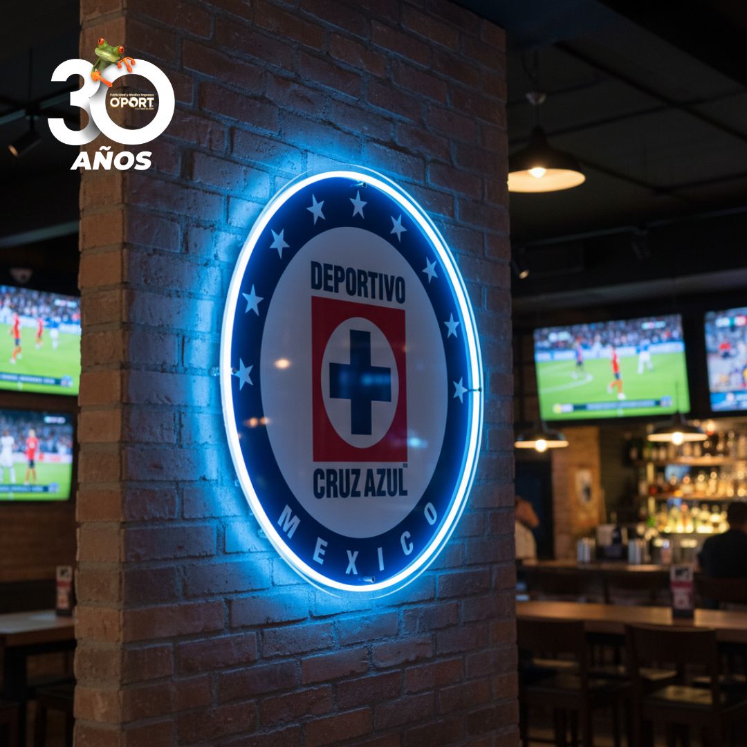 💙 Iluminación uniforme con halo neón brillante. 💡 Bajo consumo energético y gran durabilidad. ⚽ Ideal para decoración interior o colecciones de fans. 🇲🇽 Fabricado por Oport — 30 años de experiencia nos respaldan.