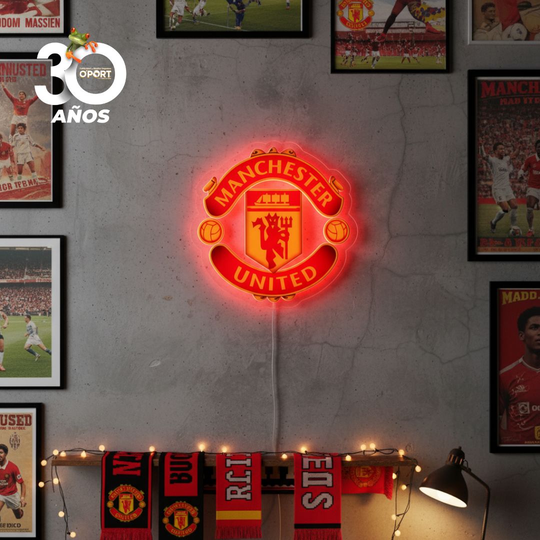 Logo Manchester United en Acrílico con Luz Neón LED Roja
