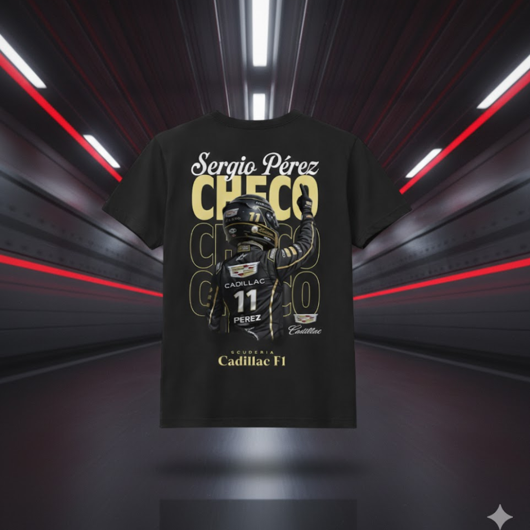 Playera negra edición especial con diseño trasero de Checo 11 en estilo victoria.