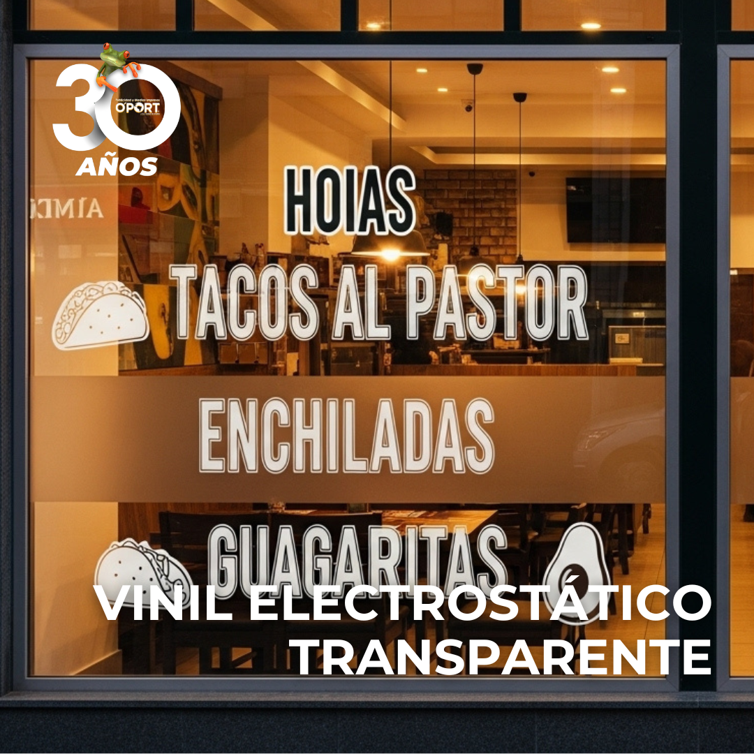 El Vinil Electrostático Transparente es la solución práctica y elegante para gráficos que requieren fácil instalación y remoción sin adhesivos. Gracias a su tecnología electrostática, se adhiere firmemente a superficies lisas como vidrio, acrílico o plástico, sin dejar residuos ni dañar el material.
